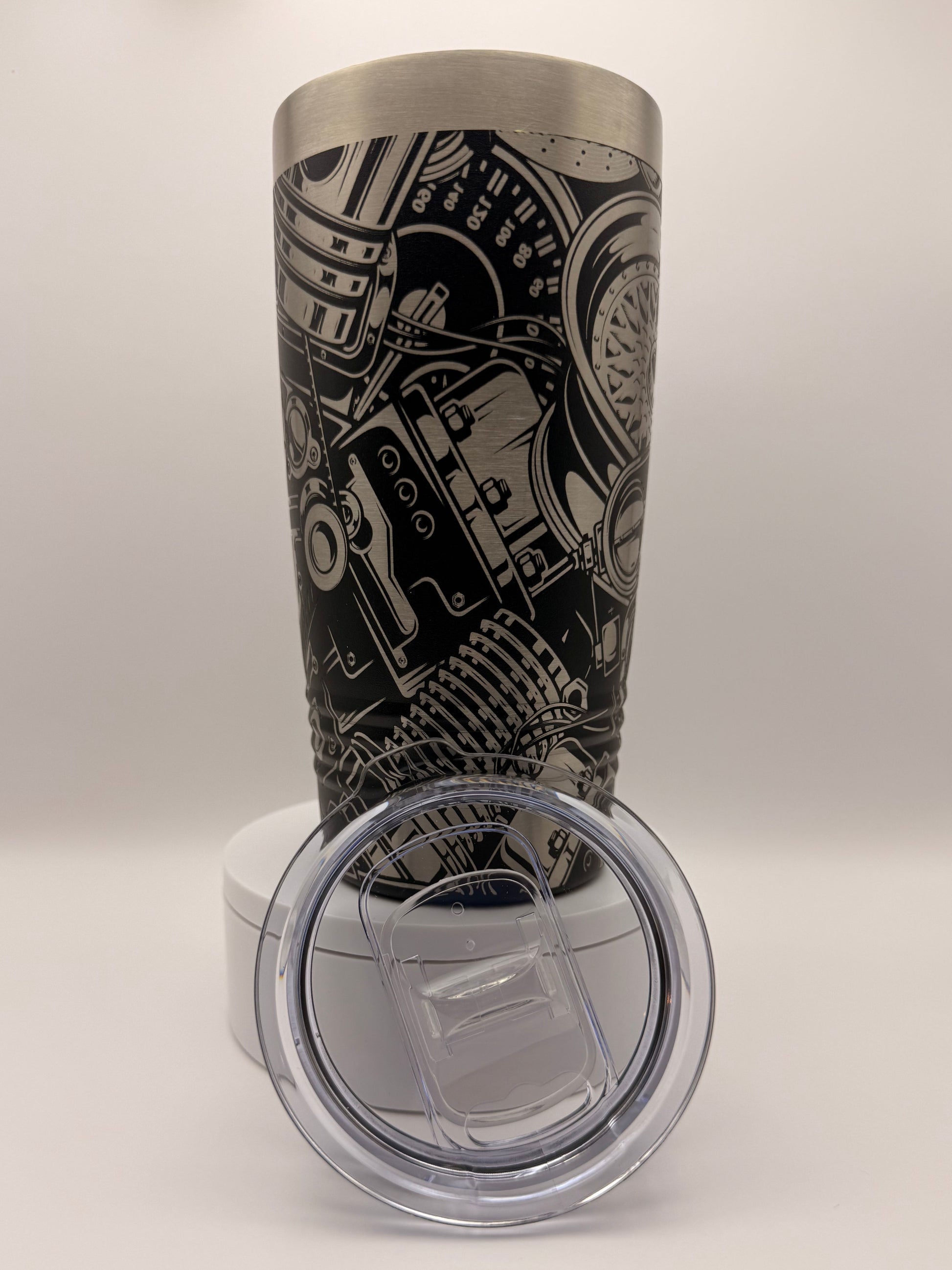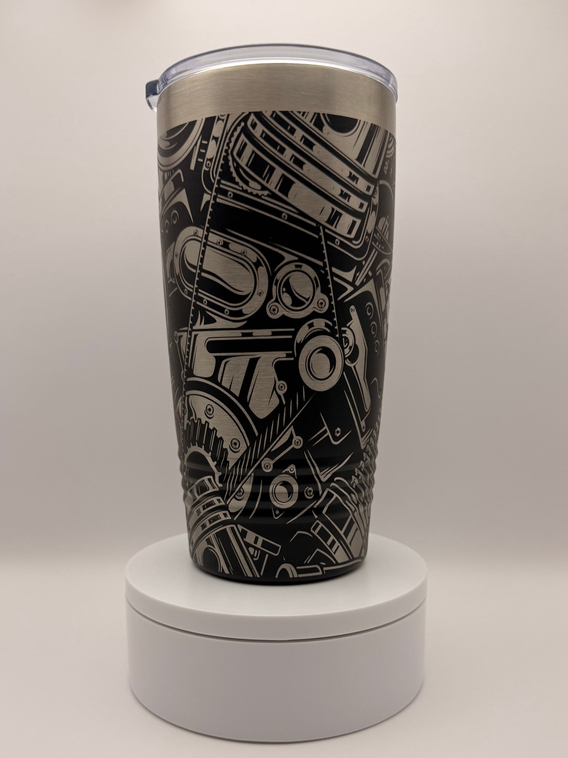 This Custom Gearhead Laser Engraved 20 oz. Stainless Steel Tumblers are great gifts for yourself or others. Perfect for when working on your own vehicles. Comes with the sliding lid to help prevent spills or unwanted items in the tumbler.