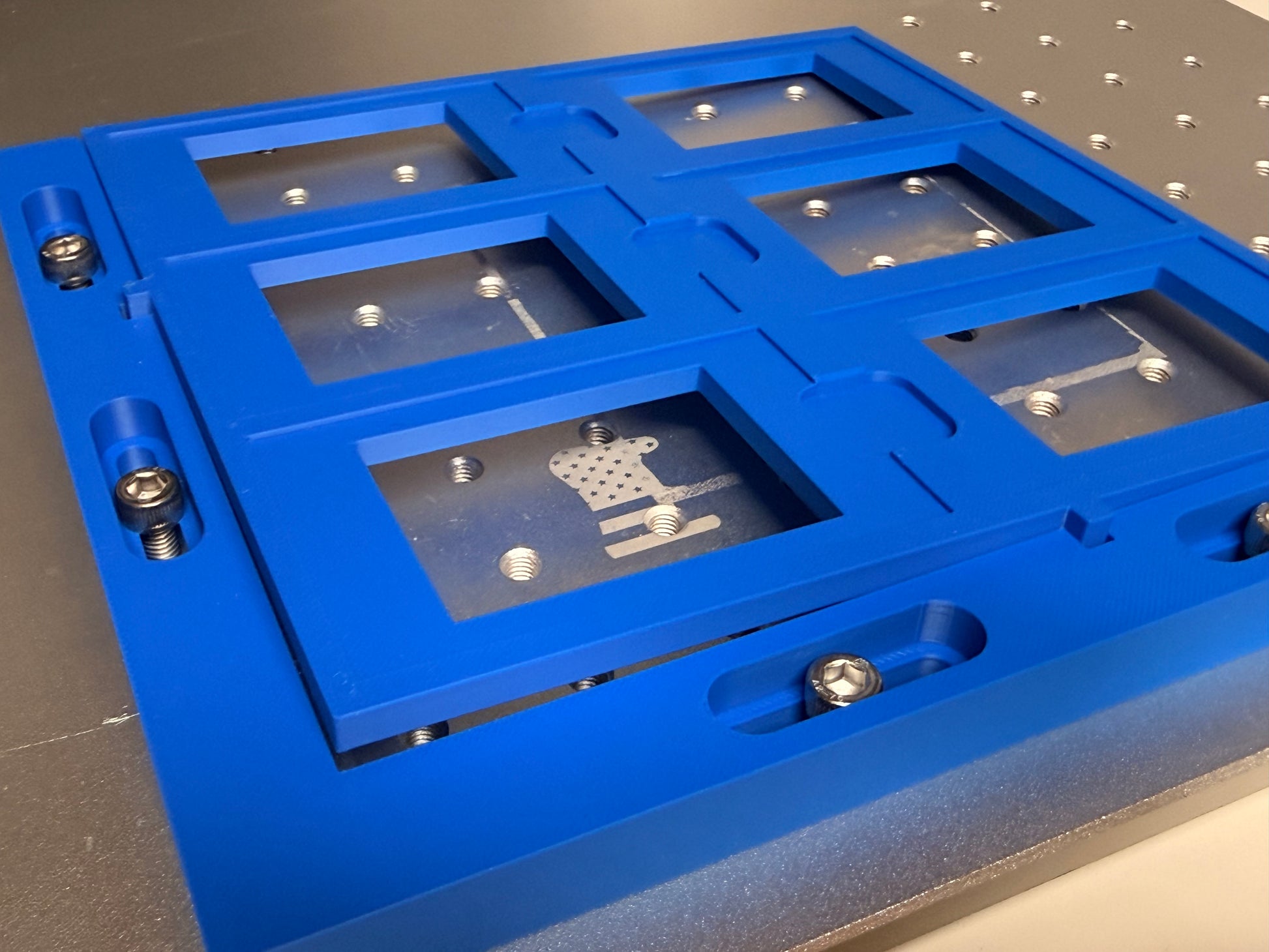 This was designed for a Galvo Laser threaded bed with a standard 25mm pattern.